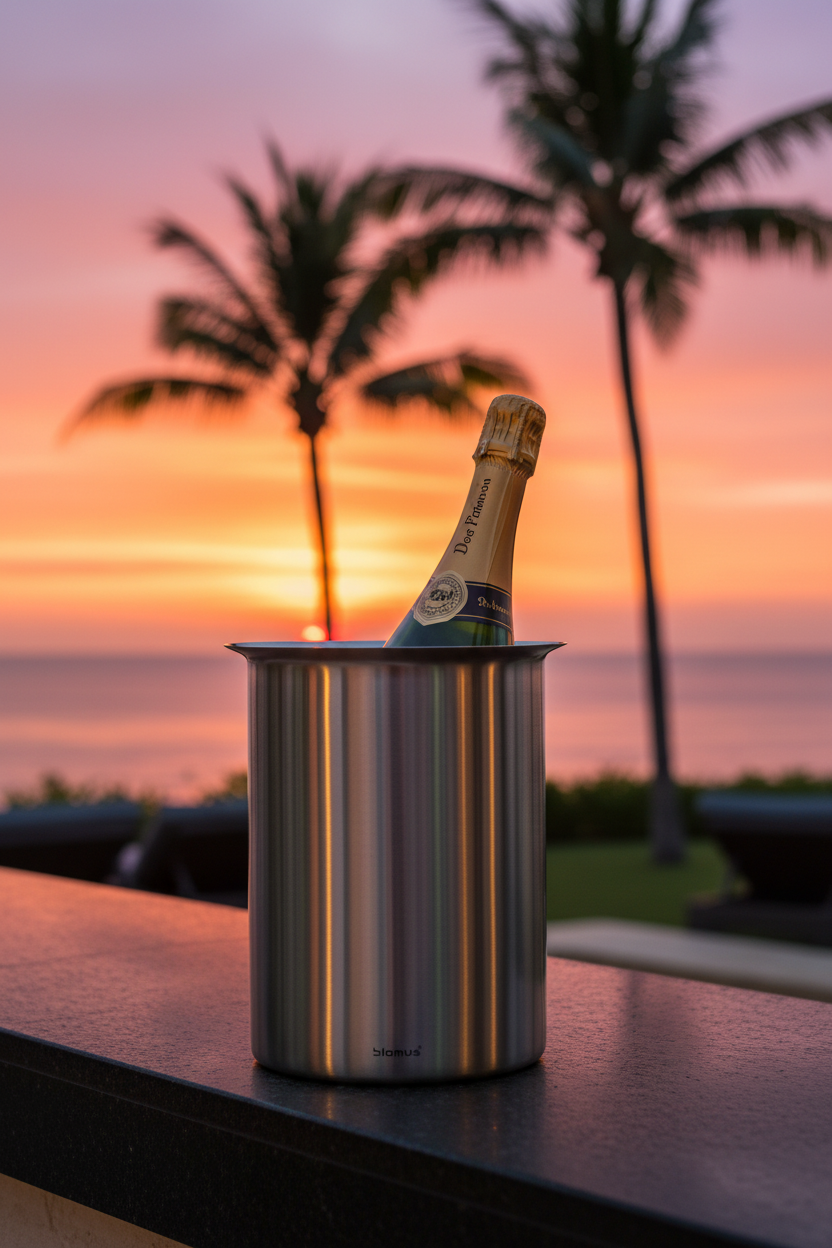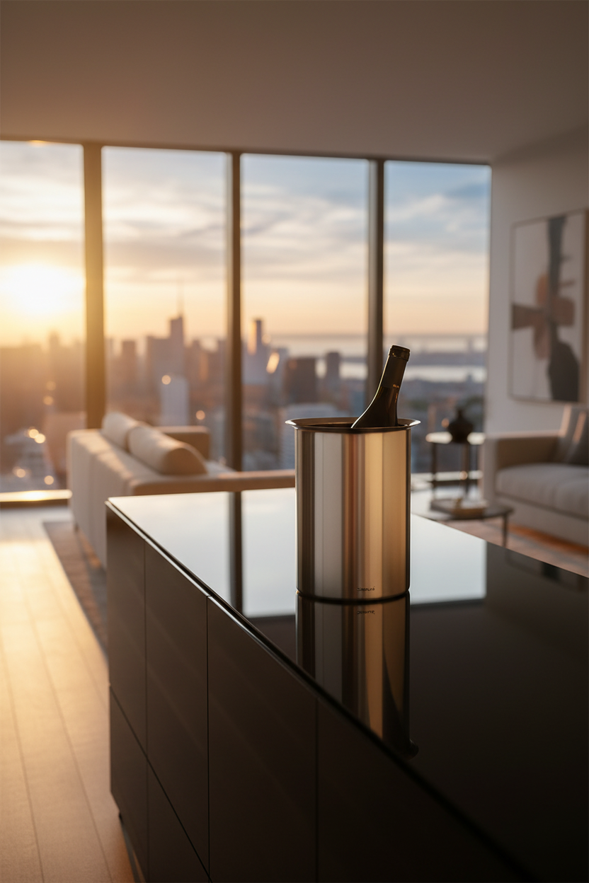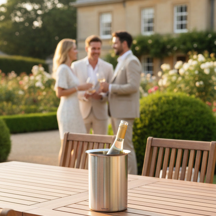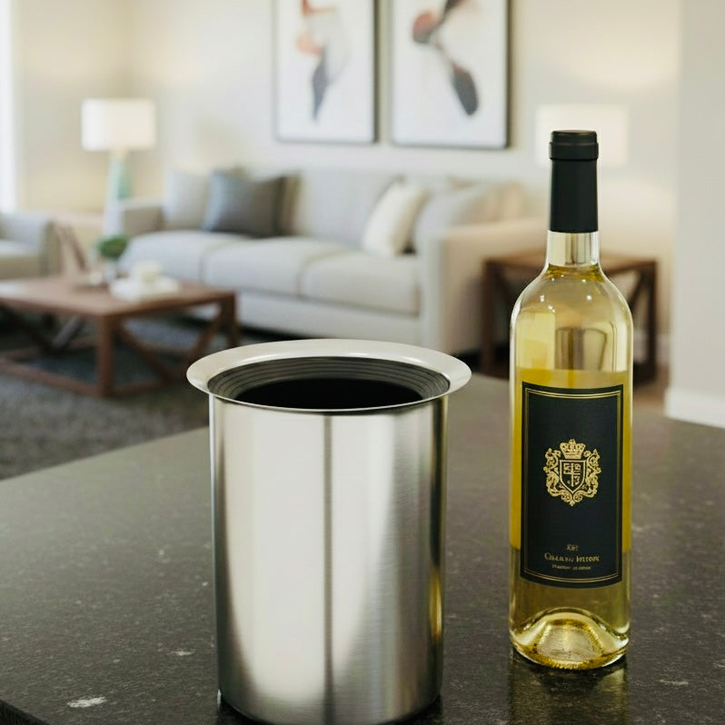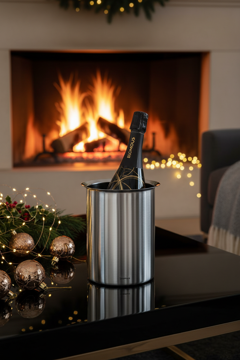 Dieser Edelstahl-Flaschenkühler in matt von Blomus besticht durch sein schlichtes aber elegantes Design.