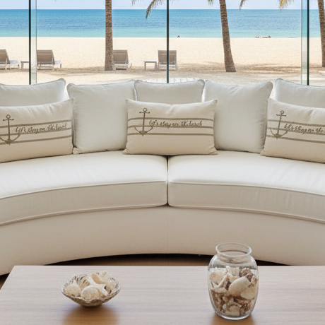Das Meer zu Hause ! Ein Deko Kissen dass sowohl die Gemütlichkeit Ihres Heimes betont als auch Sofa und Sitzgruppe ein dekoratives Highlight beschert. Ebenfalls in der Farbe Sand erhältlich beeindruckt dieses Kissen aus reiner Baumwolle trotz der groben Webstruktur mit einer hohen Materialdichte. Mit dem unauffällig eingenähten Reissverschluss lässt sich dieser Bezug abziehen und bei 30 Grad im Schonwaschgang in der Maschine reinigen