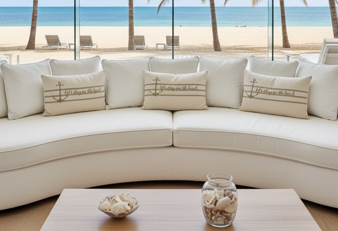 Die Kissenhülle RICCI - maritim elegante Stickerei im Querformat 35 x 60 cm
