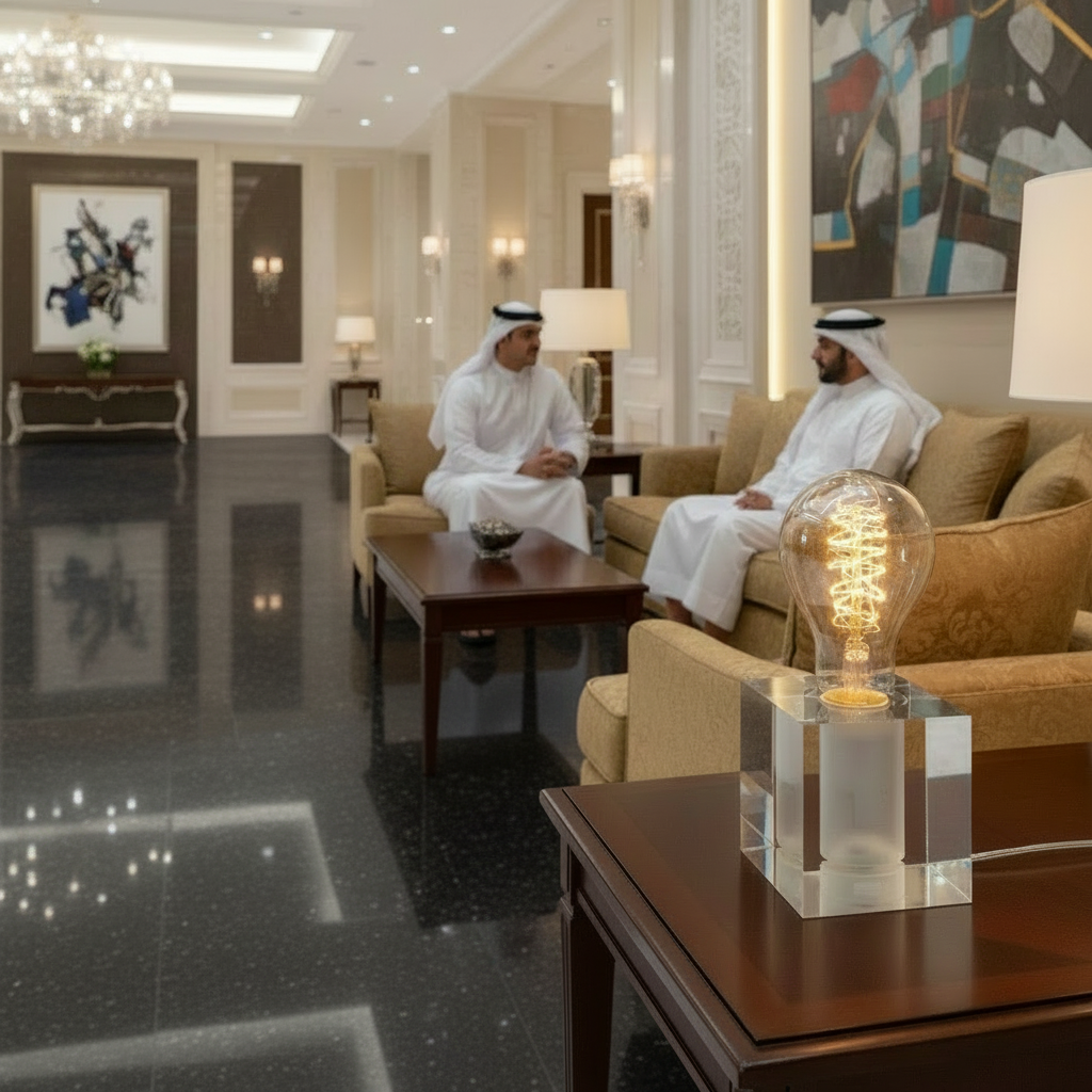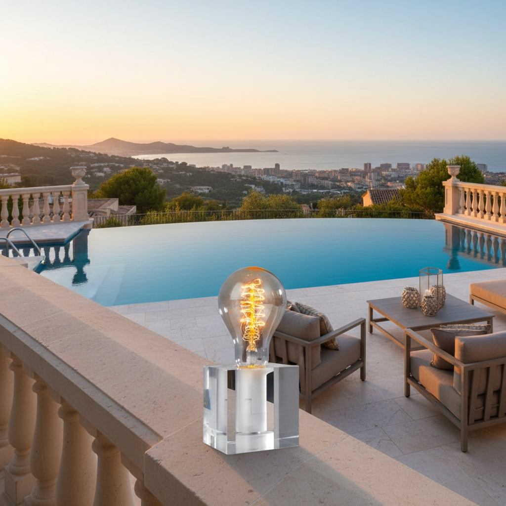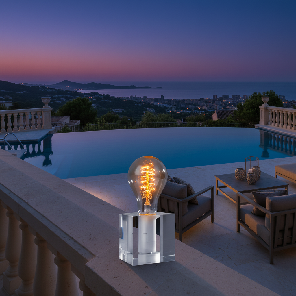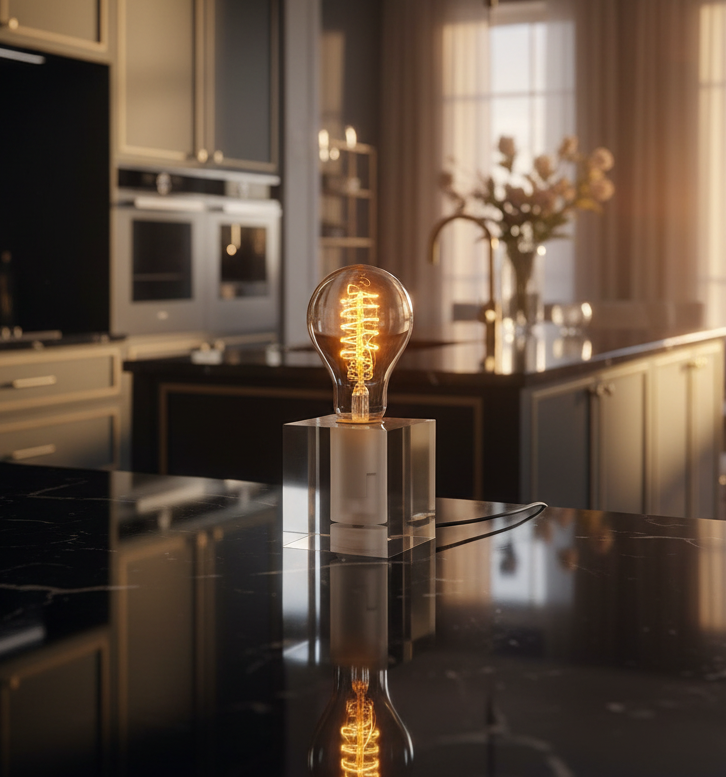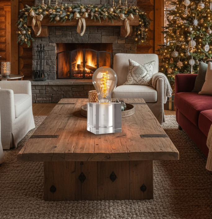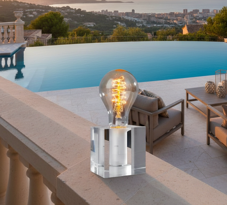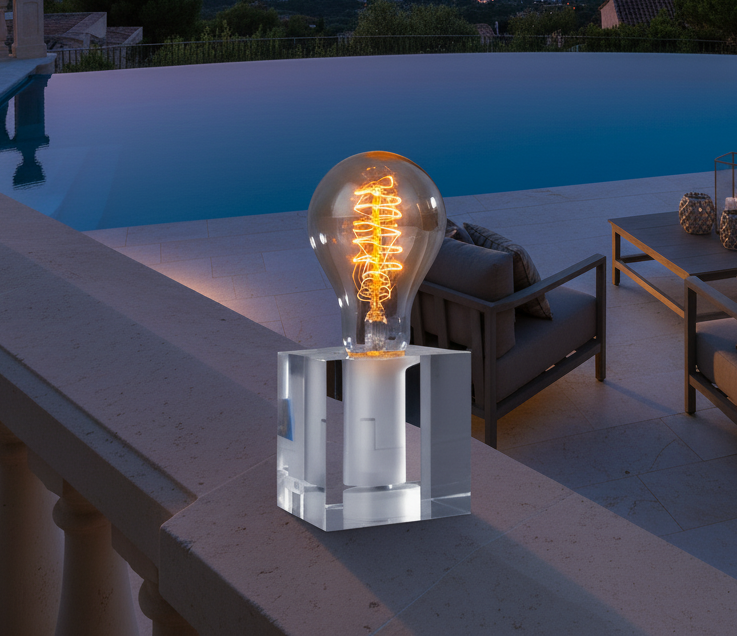 LED Retro Tischleuchte Cubic aus Acryl im puristischen Design